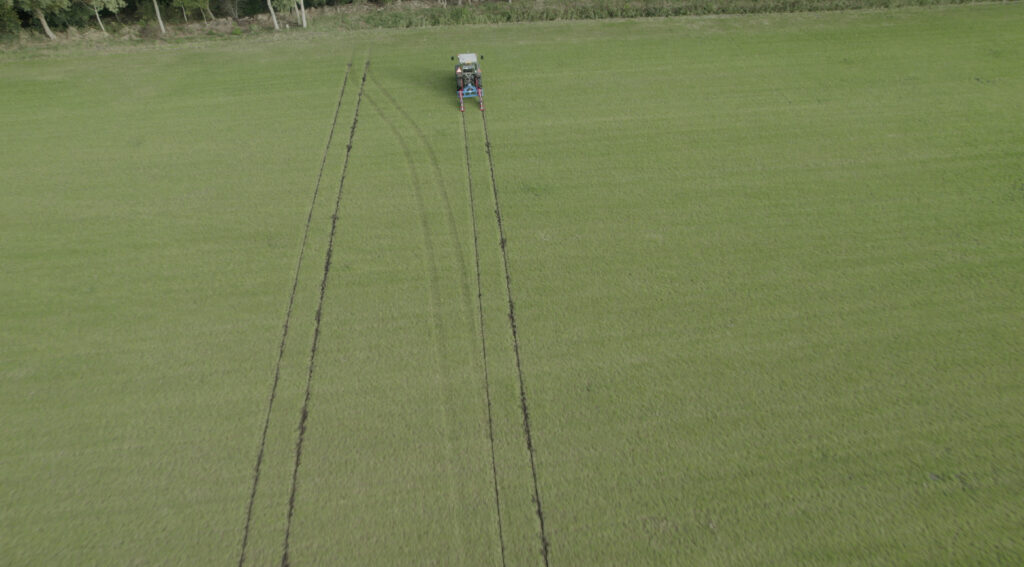 Optioneel kan een veerbelaste aandrukrol met snijring worden toegepast. Deze zorgt ervoor dat de gleuf weer gelijkmatig vlak wordt gedrukt. Doordat de schijf in het midden van de aandrukrol blijft, blijft er altijd een opening in de bovenlaag, waardoor het water eenvoudig kan worden afgevoerd.